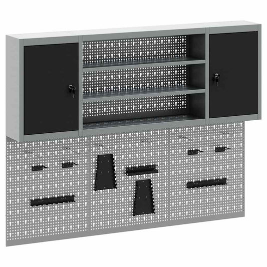 Set Armadietto degli Strumenti e Pannello Forato 6 pcs Nero