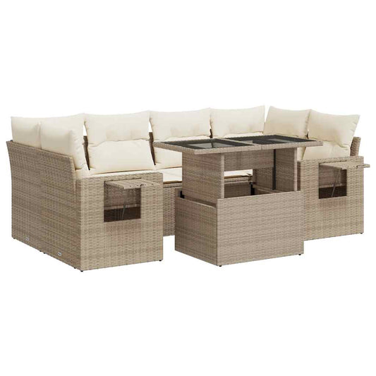 Set Divani da Giardino 7 pz con Cuscini Beige in Polyrattan