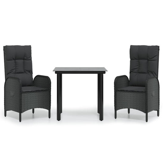 Set da Pranzo da Giardino 3 pz con Cuscini Nero in Polyrattan