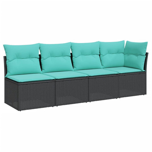 Divano da Giardino con Cuscini a 4 Posti Nero in Polyrattan