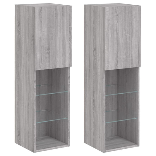 Mobili TV con Luci LED 2pz Grigio Sonoma 30,5x30x102 cm