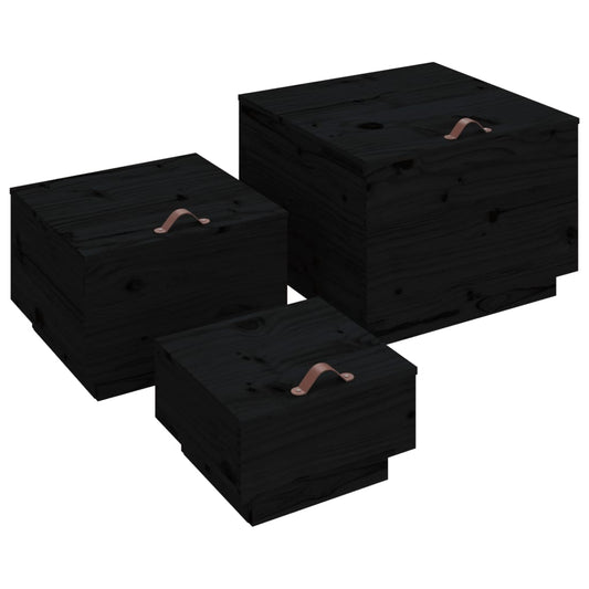 Contenitori Portaoggetti Coperchi 3pz Neri Legno Massello Pino