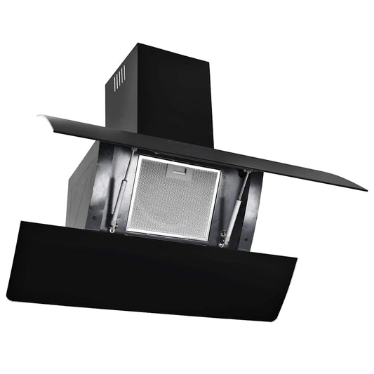 Cappa a Parete 90 cm in Acciaio Inox e Vetro Temperato Nero