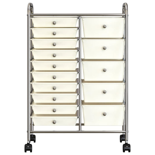Carrello Portaoggetti XXL con 15 Cassetti Bianco in Plastica