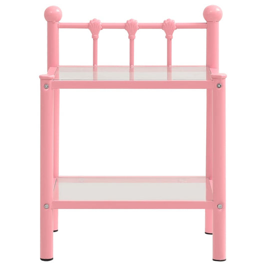 Comodini 2 pz Rosa e Trasparente in Metallo e Vetro