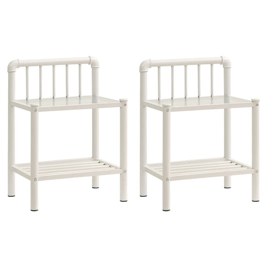 2 pcs White and Transparent Bedside Tables in Metal and Glass