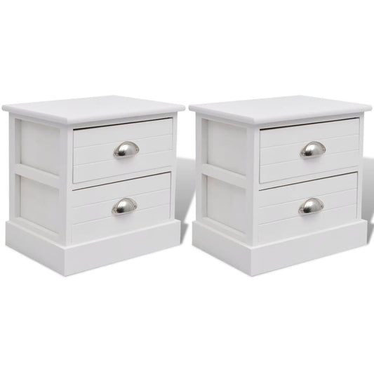 Set Comodini 2 pz con 2 Cassetti Bianchi