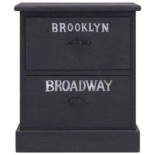 2pcs Black Bedside Tables 38x28x45 cm in Paulownia Wood