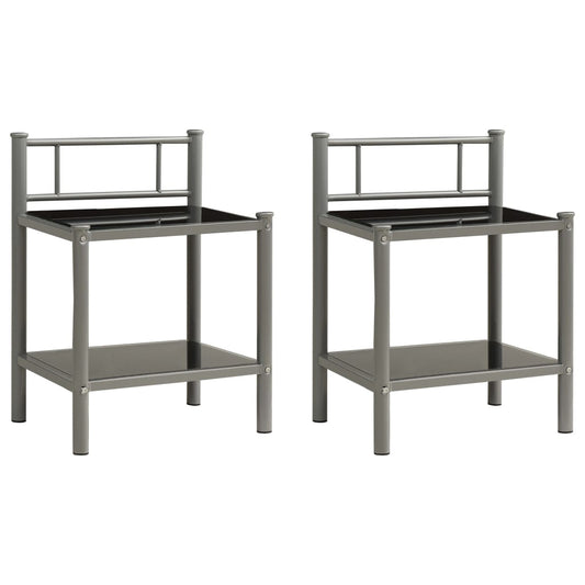 Bedside tables 2 pcs Gray and Black in Metal and Glass