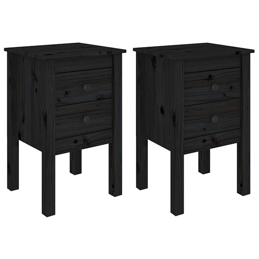 Bedside tables 2 pcs Black 40x35x61.5 cm in Solid Pine Wood