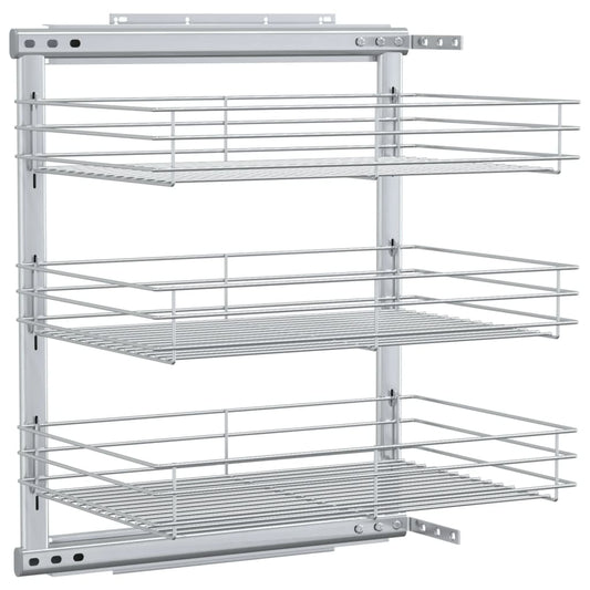 Cestino da Cucina in Rete a 3 Livelli Argento 47x35x56 cm