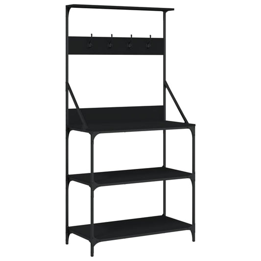 Scaffale da Cucina con Ganci 4 Ripiani Nero Legno Multistrato