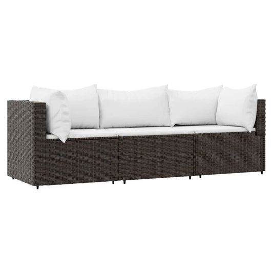 Set Mobili da Giardino 3 pz con Cuscini in Polyrattan Marrone