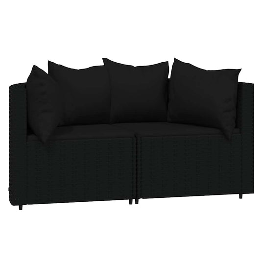 Divani Angolari da Giardino con Cuscini 2pz in Polyrattan Nero