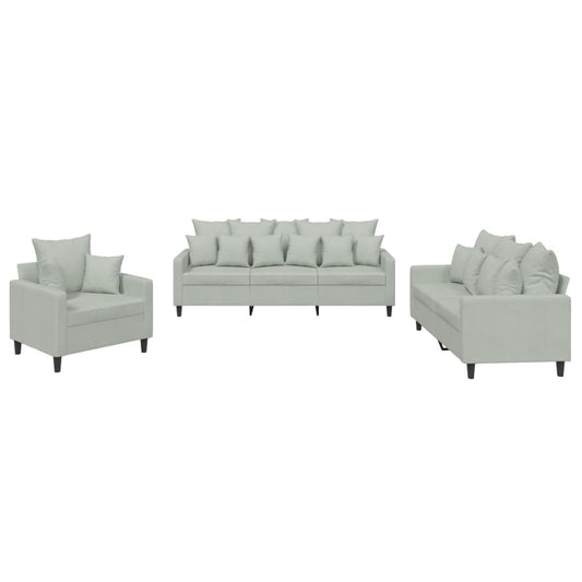 Set di Divani 3 pz con Cuscini Grigio Chiaro in Velluto