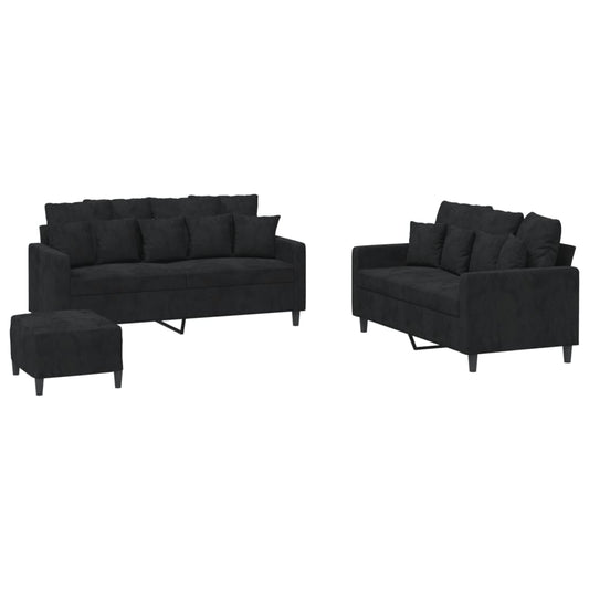 Set di Divani 3 pz con Cuscini Nero in Velluto