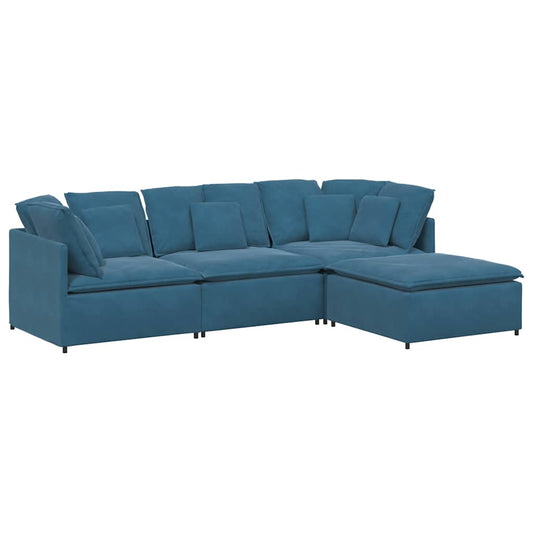 Divano Modulare con Poggiapiedi e Cuscini in Velluto Blu