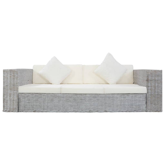Divano a 3 Posti con Cuscini Grigio in Rattan Naturale