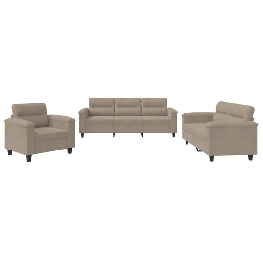 Set Divani 3 pz con Cuscini Tortora in Tessuto Microfibra