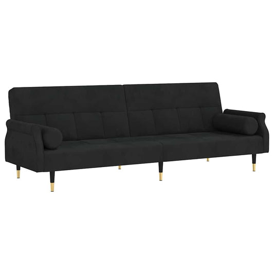 Divano Letto con Cuscini Nero in Velluto