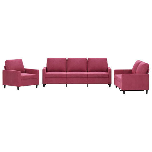 Set di Divani 3 pz con Cuscini Rosso Vino in Velluto