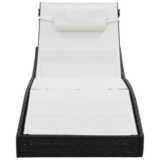Lettino Prendisole con Cuscino in Polyrattan Nero