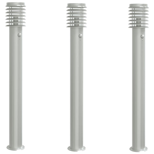 Lampada da Terra per Esterni Sensore Argento 3 pz 110cm Acciaio