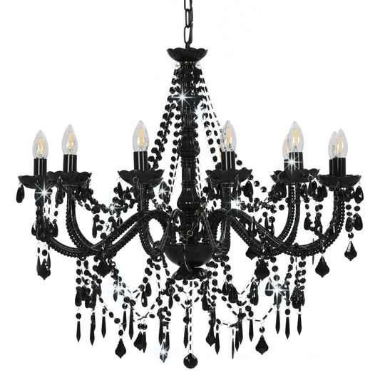 Lampadario Art Nouveau Nero Metallo Perline Cristallo e Lampadine E14
