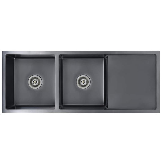 Lavello da Cucina Lavorato a Mano Nero Acciaio Inox