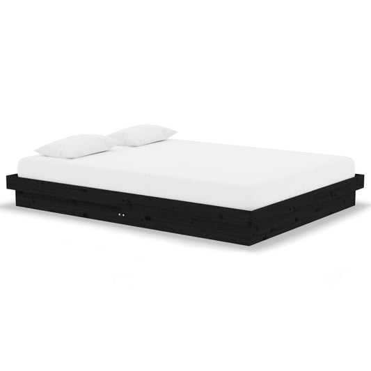 Black Solid Wood Bed Frame 135x190 cm Double