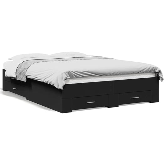 Giroletto con Cassetti Nero 140x190 cm in Legno Multistrato