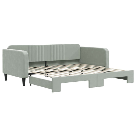 Divano Letto Estraibile Cassetti Grigio Chiaro 90x190cm Velluto