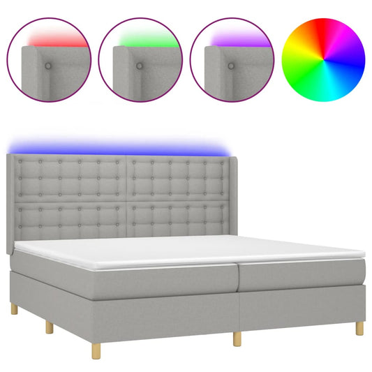 Letto a Molle Materasso e LED Grigio Chiaro 180x200 cm Tessuto