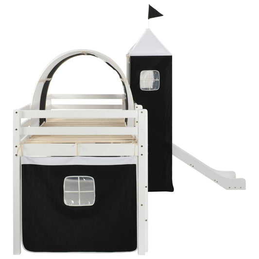 Giroletto per Bambini Nero 90x200 cm in Legno Massello di Pino