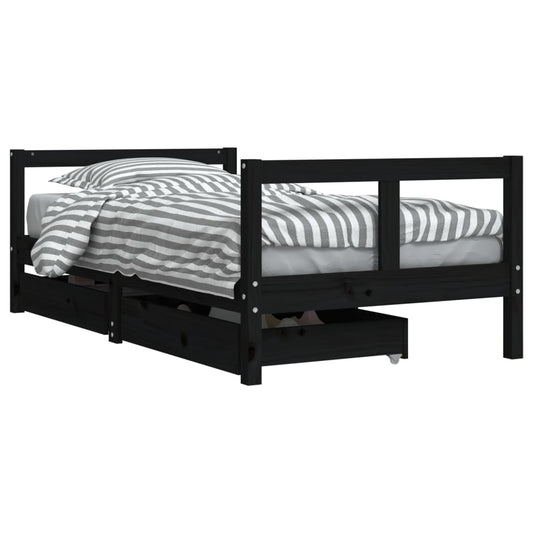 Giroletto per Bambini con Cassetti Nero 80x160 cm Massello Pino