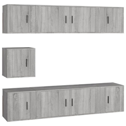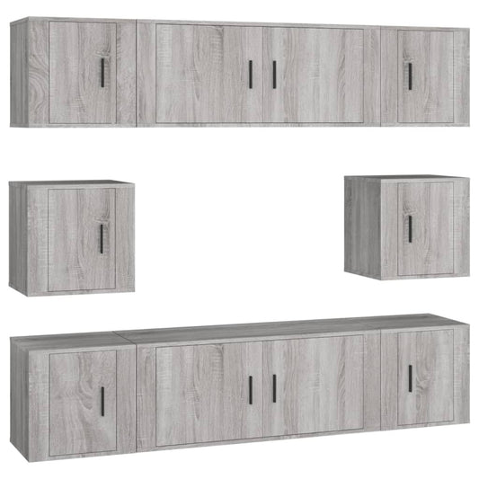 Set di Mobili Porta TV 6 pz Grigio Sonoma in Legno Multistrato