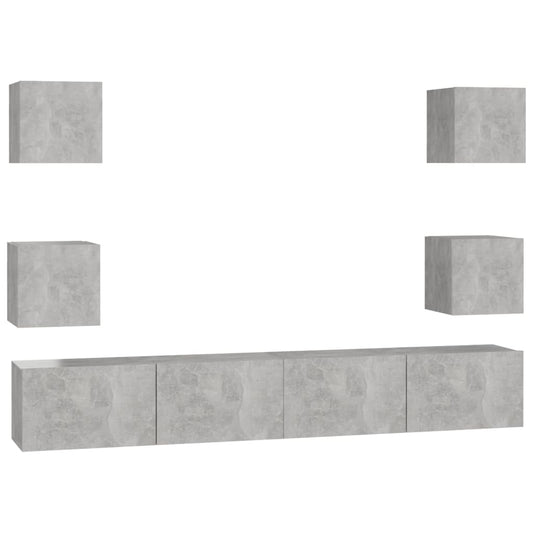 Set di Mobili Porta TV 6 pz Grigio Cemento in Legno Multistrato