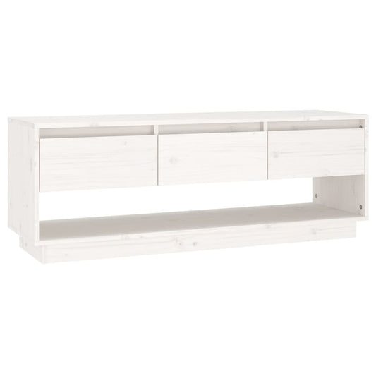 Mobile Porta TV Bianco 110,5x34x40 cm in Legno Massello di Pino