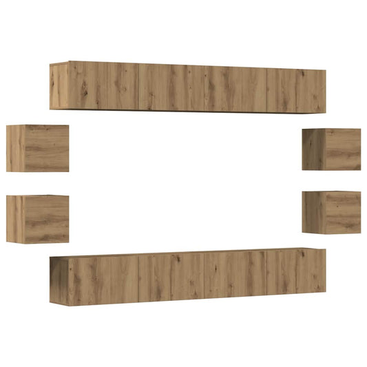 Set Mobile TV 8 pz Montato a Parete Rovere in Legno Multistrato