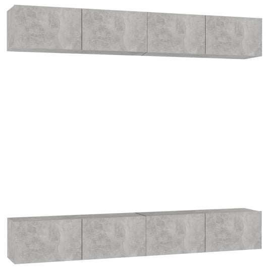Set di Mobili Porta TV 4 pz Grigio Cemento in Legno Multistrato