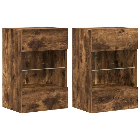 Mobili da parete con luci LED per TV 2pz Rovere Fumo 40x30x60,5 cm
