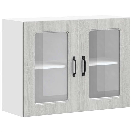 Pensile da Cucina con Porta in Vetro Kalmar Grigio Sonoma