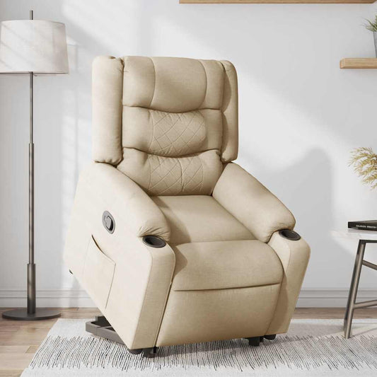 Poltrona Alzapersona Massaggiante Reclinabile Crema in Tessuto