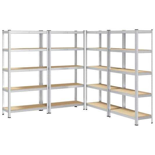 Mensole Portaoggetti 5 Strati 4 pz Argento in Acciaio e Legno