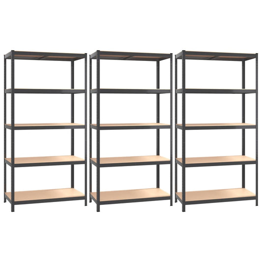 Mensole 5 Strati 3 pz Antracite in Acciaio e Legno Multistrato