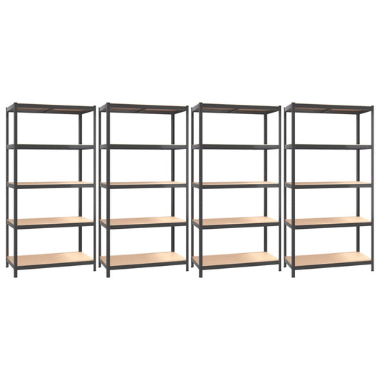 Scaffali 5 Ripiani 4pz Antracite in Acciaio e Legno Multistrato