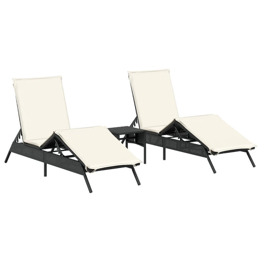 Sun Loungers with Cushions 2 pcs Black in Polyrattan