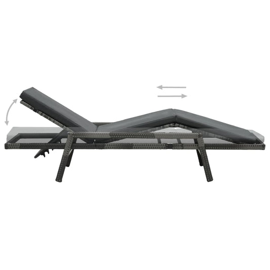 Sun lounger with cushion in Anthracite Polyrattan