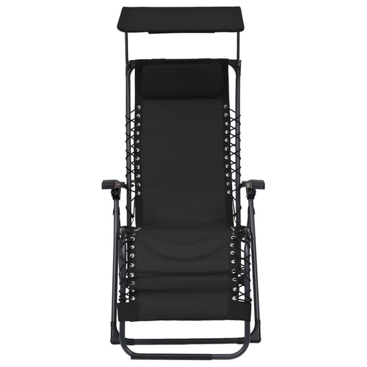 Lettino Pieghevole con Tettuccio Alluminio e Textilene Nero