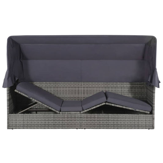 Lettino da Giardino con Tettuccio Grigio 205x62 cm Polyrattan